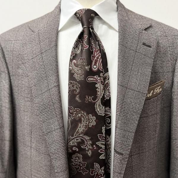 ブラウンのベースに繊細なペイズリー柄が施された、洗練された一本です。