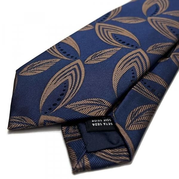 ネイビーベースにブラウンカラーのリーフを思わす幾何学模様が施された一本です。