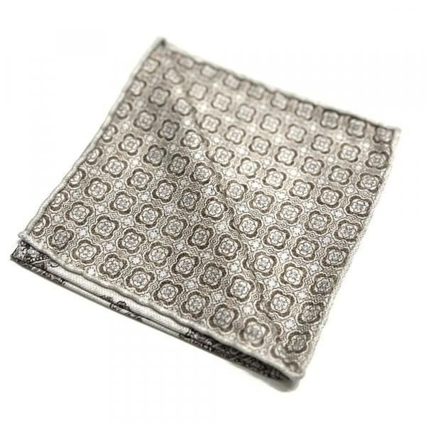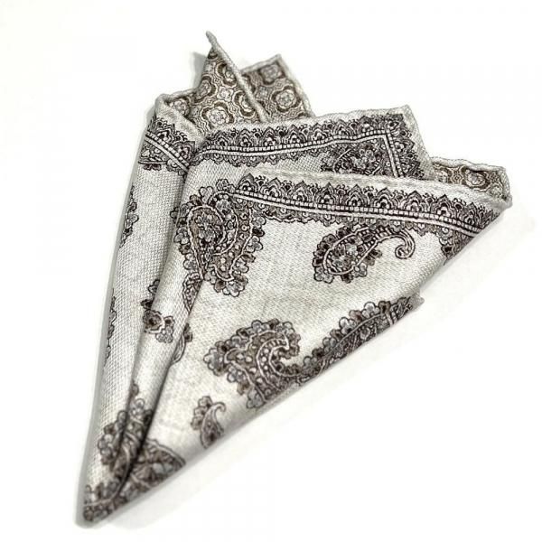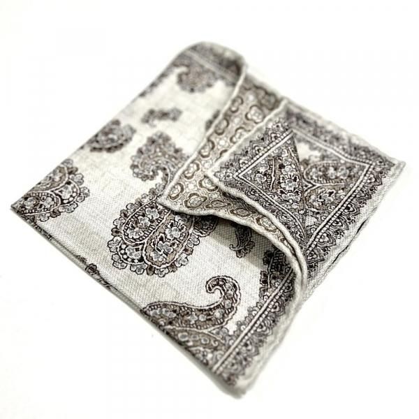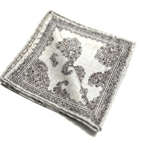 ROSI COLLECTION ( ロージ コレクション ) ポケットチーフ オフホワイト ペイズリー柄 裏 カーキー 小紋柄 ダブルフェイス シルク ハンドメイド イタリア製