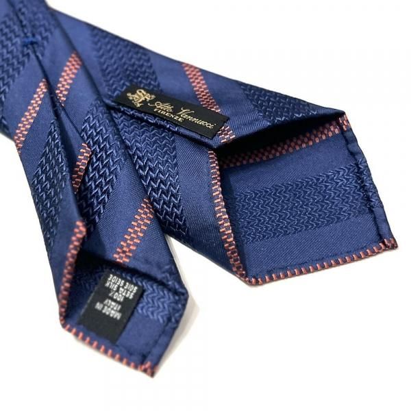 Vannucciの代名詞である7つ折りのオリジナルネクタイ「Sette Pieghe(セッテピエゲ)」はスカーフの様に柔らかく、上品な佇まいが魅力です。