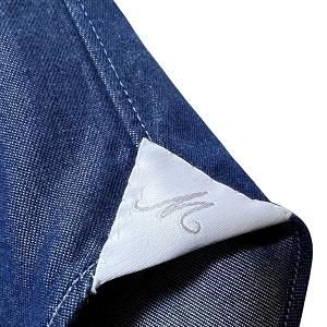 襟とカフス(ラウンドカフス)にコバステッチ(布端から1〜2mmのステッチ)を入れさせて頂きました。