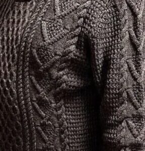 手首から肘にかけてのアラン編みがまたドラマティックで、