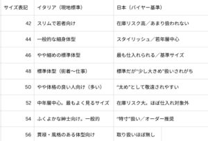 現地の紳士服ブランドのサイズ展開は決して“日本で言われるほどスリム一辺倒”ではありません。